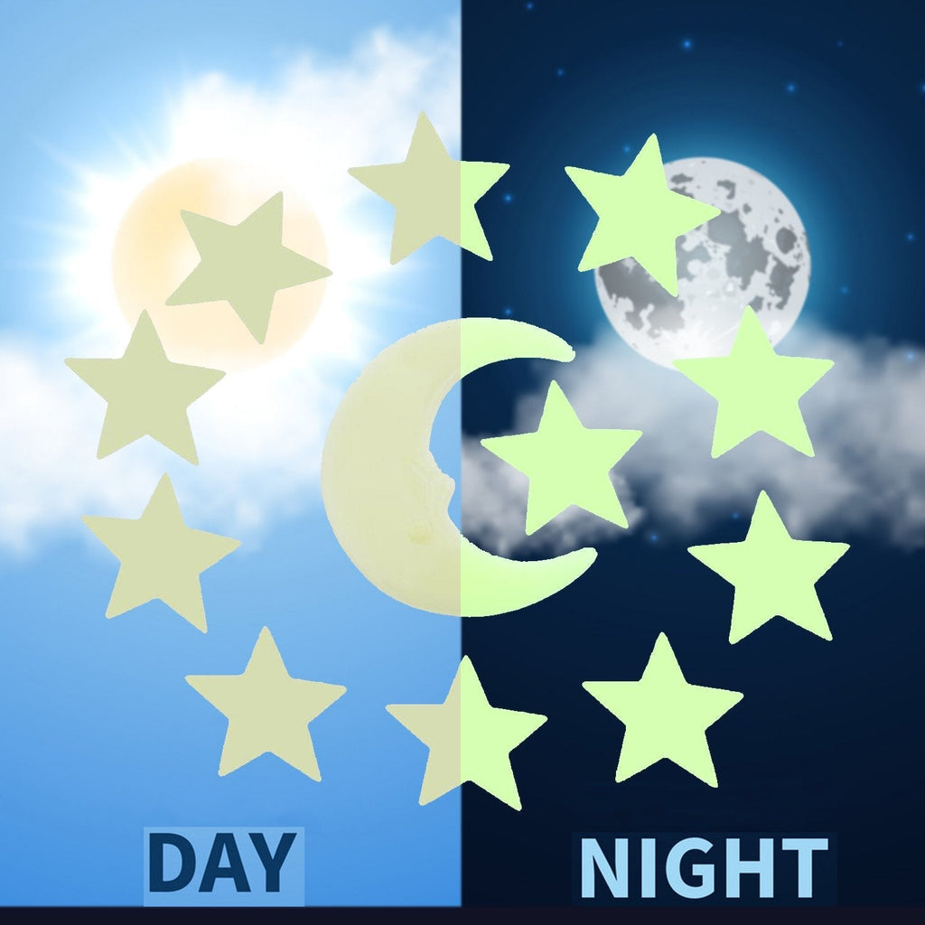 Glowing Stars and Moon can help your child not be afraid of darkness. Glowing stickers can create a warm atmosphere and help your child fall asleep soon. what's more, Present the gift that is given away every night and put a smile on the faces of the people you love as they gaze into the glow of the Simple.